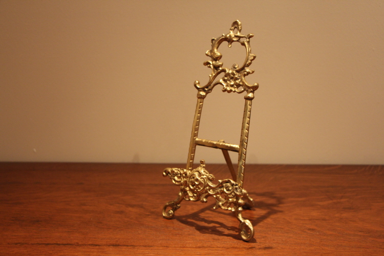황동으로 만들어진 접시. 액자 스텐드 입니다